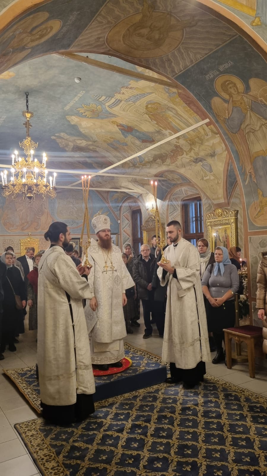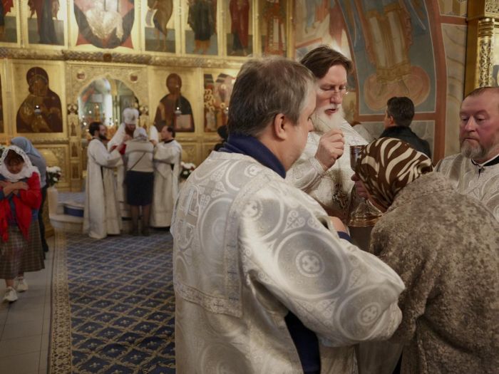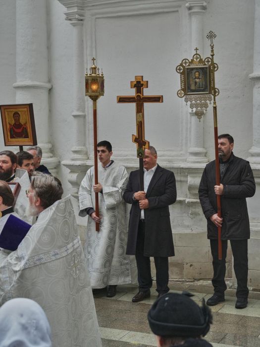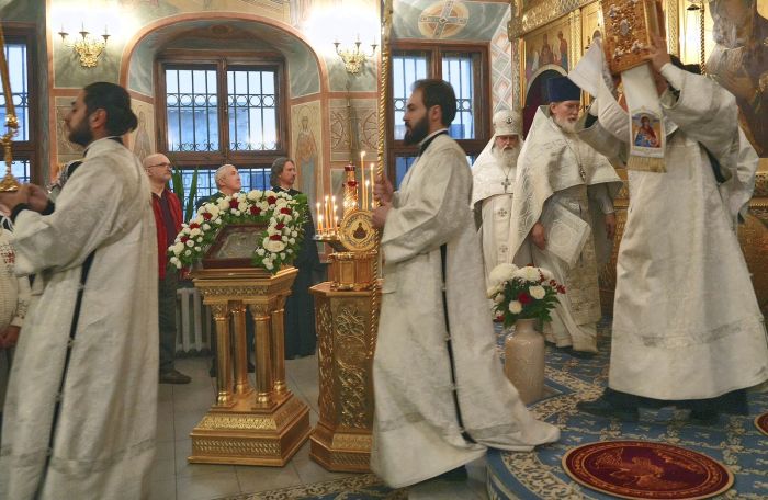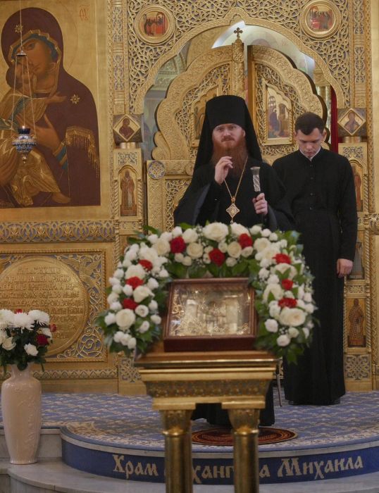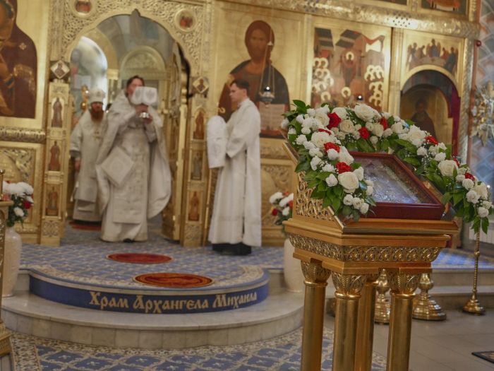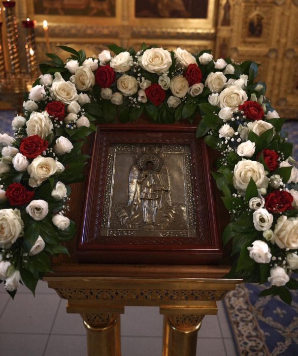 В этом году вечерняя служба предварялась чтением Акафиста Архангелу Божию Михаилу. А утренняя же праздничная служба предварялась водосвятным молебном. Многие прихожане пришли в ранний час, чтобы с радостью и благоговением принять участие в Божественной Литургии и общей молитве пред почитаемой храмовой иконой.
