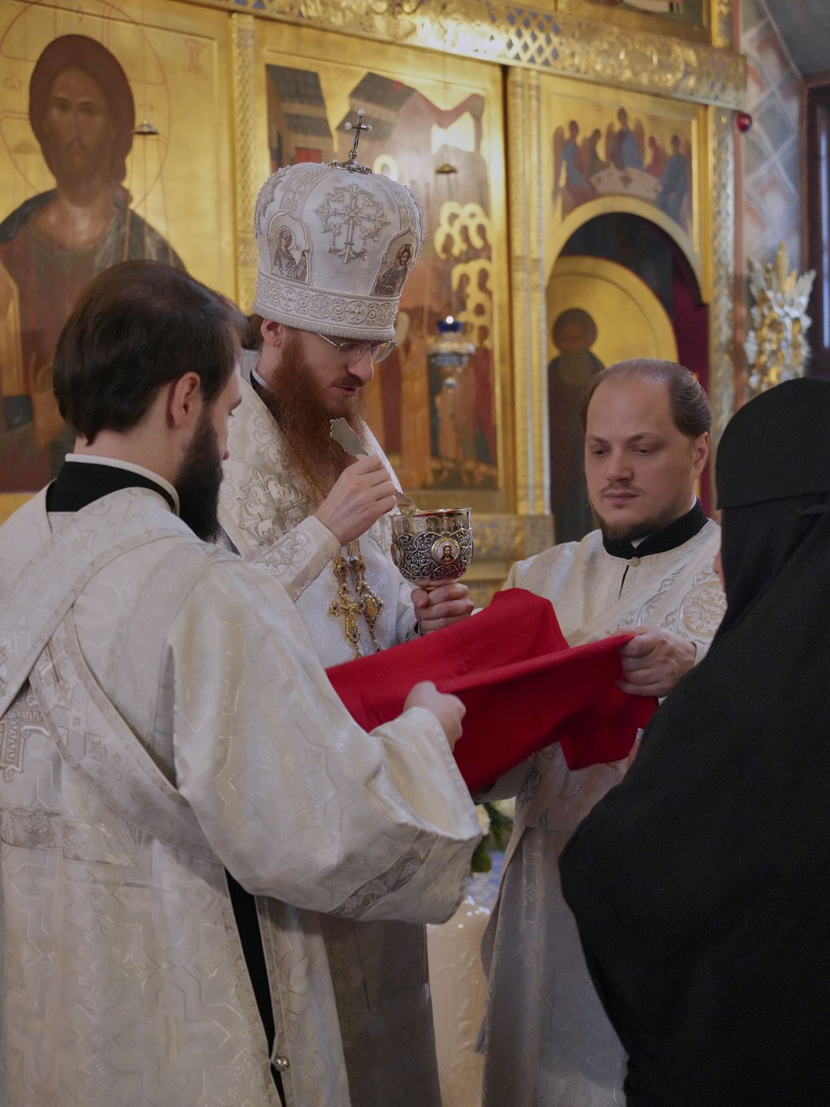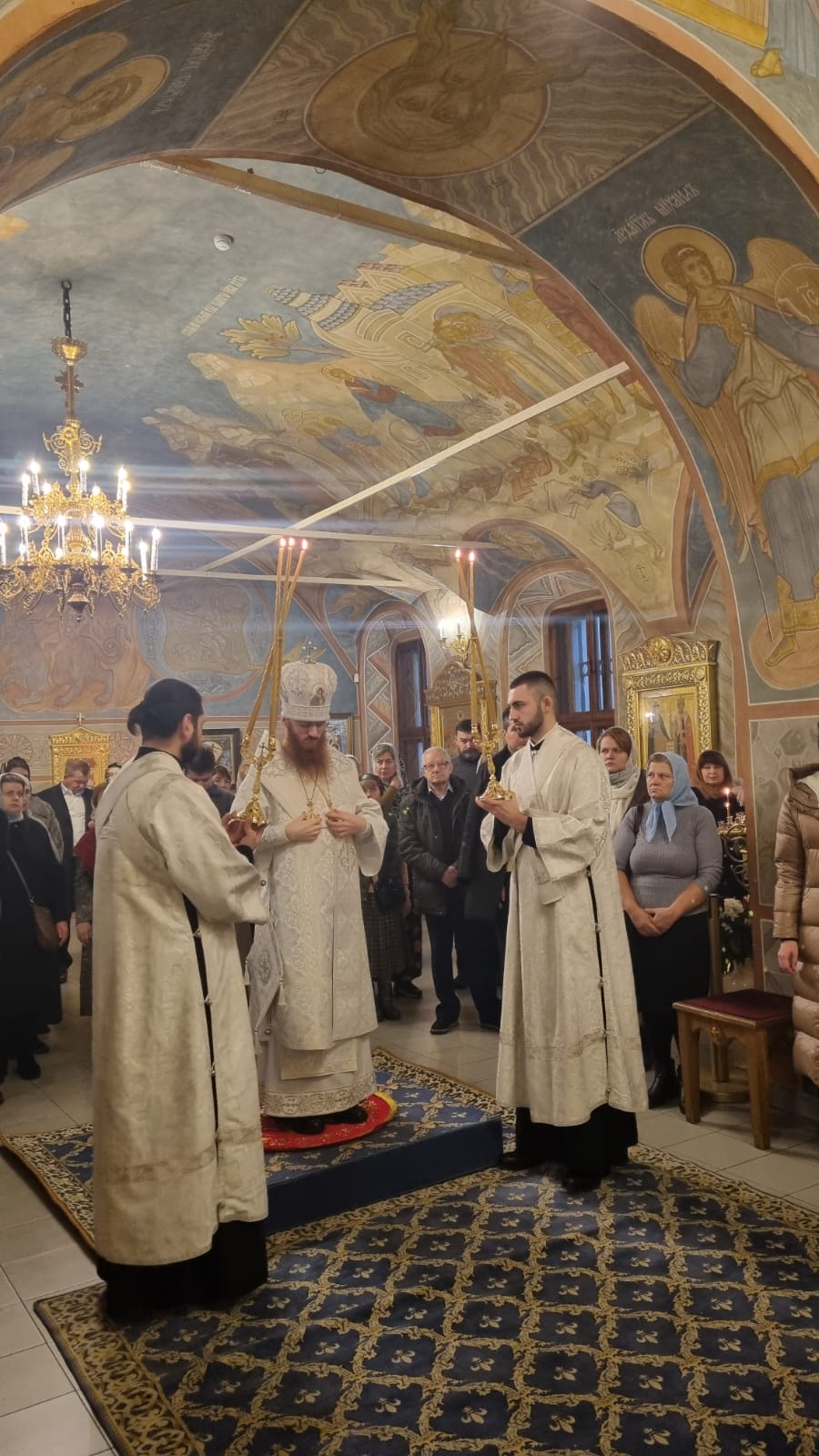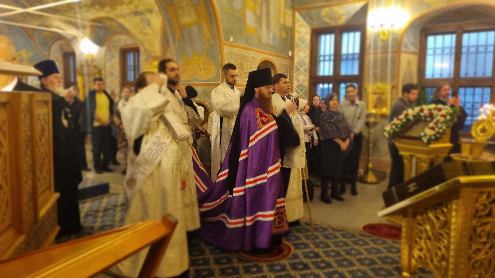 В этом году вечерняя служба предварялась чтением Акафиста Архангелу Божию Михаилу. А утренняя же праздничная служба предварялась водосвятным молебном. Многие прихожане пришли в ранний час, чтобы с радостью и благоговением принять участие в Божественной Литургии и общей молитве пред почитаемой храмовой иконой.